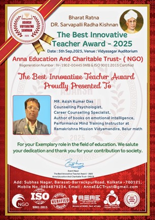 Our Founder Director Asish Kumar Das, a Counselling Psychologist, Neuro Linguistic Programming Master Trainer, Focus & Concentration Development Parenting Facilitator, UNESCO Certified Social & Emotional Learning Provider, Mindset Course Faculty- Ramakrishna Mission Vidyamandira College Bose House Campus